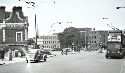 Here it is built, dominating the view on the approach to Kew Bridge taken before trolley buses were phased out in May 1962. After 1965 the building was taken over by the Wool Marketing Board. |