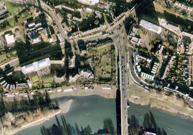 the bridge. The buildings to the left of the site are the Thameside Centre. Kew
