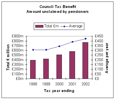 Figures for council tax benefit are even worse. There the number not claiming the help available with this much resented tax rose by more than half, from just over a million to more than one and three quarter million. And the amount they lost rose from £306 a year to £426, leaving £770 million of help not claimed. Between the two benefits there is £2 billion which the Government had set aside to help older people languishing in the Treasury coffers.
