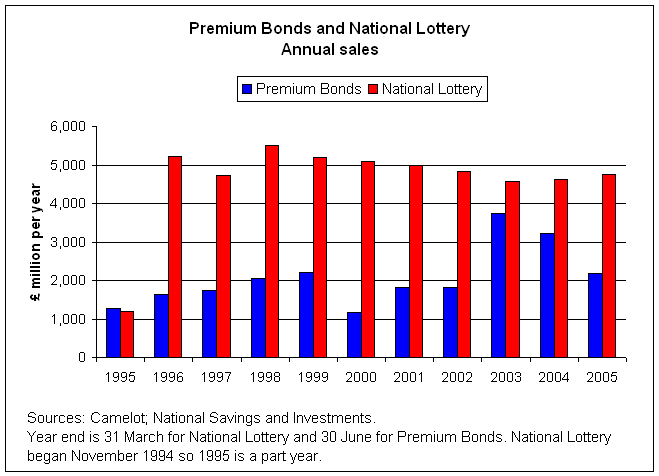 Premium Bond sales need a boost – they have fallen for two years as National Lottery sales have recovered. Both gambles help keep down taxes. Premium bonds by reducing Government borrowing. And the Lottery through the 12p tax on every pound we bet. In addition some of the 28p from each £1 which funds the so-called Good Causes is in fact being used to replace normal public spending on things like schools and the health service.