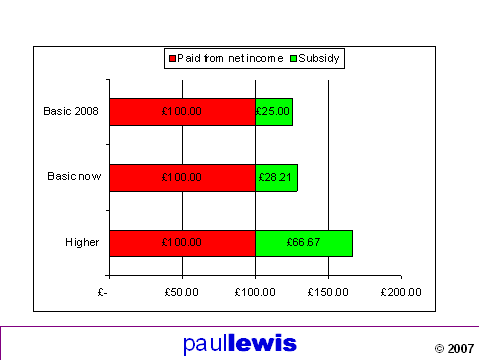 But if I am a basic rate taxpayer I put in £100 and Gordon stumps up just £28.21. So the poorer I am the smaller the subsidy into my pension. And next year it gets worse. Basic rate tax is cut. So if I put £100 out of my net income into a pension I will only get £25 subsidy. So £3.20 off my pension, but no change to the subsidy for richer folk.