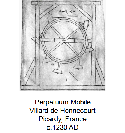 And his 13th century invention the Perpetuum Mobile. And ou can find similar ideas right up to the present day. Any one of these perpetual motion machines would solve global warming, giving us free energy forever. But they don’t.