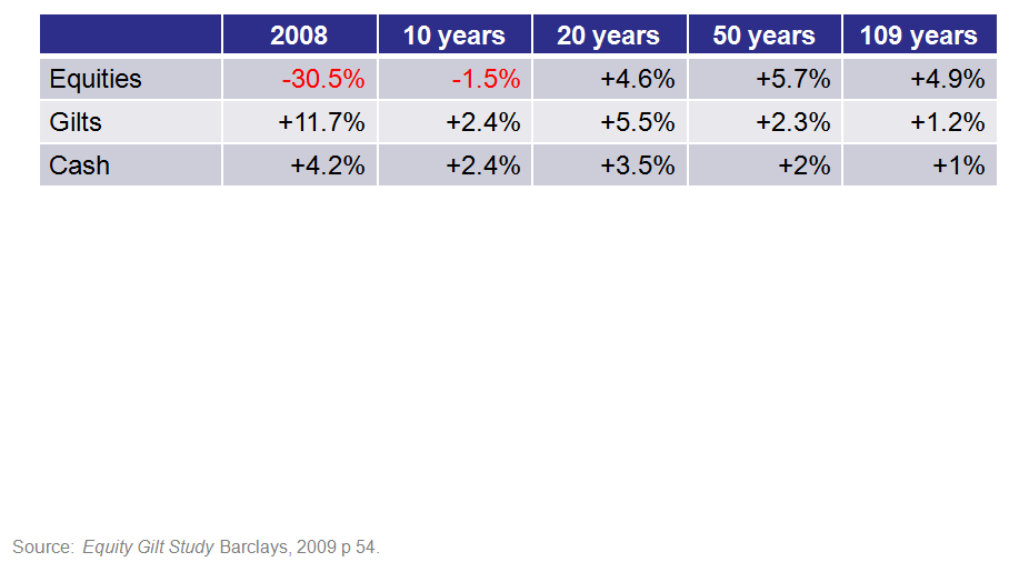 And if you want information the sales person – sorry financial adviser – will produce research to show that shares, or equities as they like to call them, have consistently produced the best returns in the long-term.
