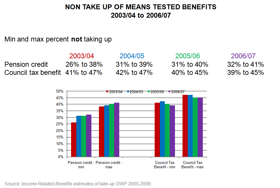 That shows the scale of how much means-testing does not work. Depending on the benefit between 19% – say one in five – and 58% – say six out of ten – of those who could claim do not do so.