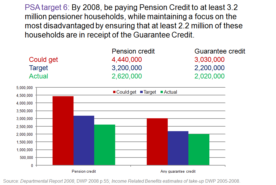 That is a poor enough target. Far fewer than could get the benefit. But it was failing to achieve even that. And so the DWP departmental report for 2008 said
