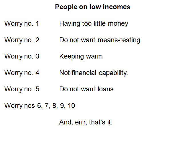 Worry no.2 for those on low incomes? means-testing.
