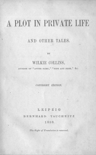 | Tauchnitz was the principle publisher of English works on continental Europe. They were mainly sold to English speaking travellers abroad. As a result of the deals done with authors, the books could not be sold in the United Kingdom. Hence this letter getting permission from HM Customs for the import of the books for Wilkie's own use. 'A Plot in Private Life and Other Tales' was published by Tauchnitz in November 1859 and contained five of the stories published in The Queen of Hearts. |