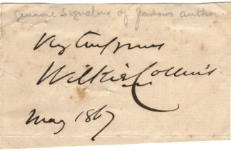 [Genuine signature of famous author] Vy truly yours Wilkie Collins May 1867