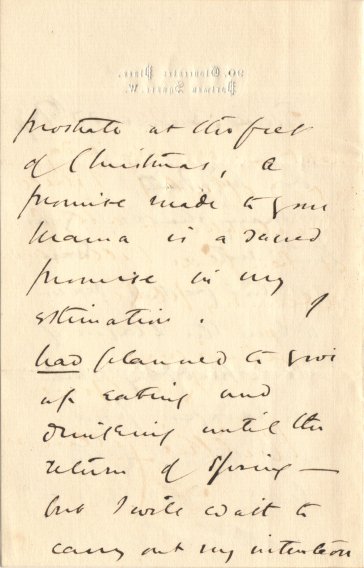 | prostrate at the feet of Christmas, a promise made to your Mama is a sacred promise in my estimation. I had planned to give up eating and drinking until the return of Spring - but I will wait to carry out my intention |