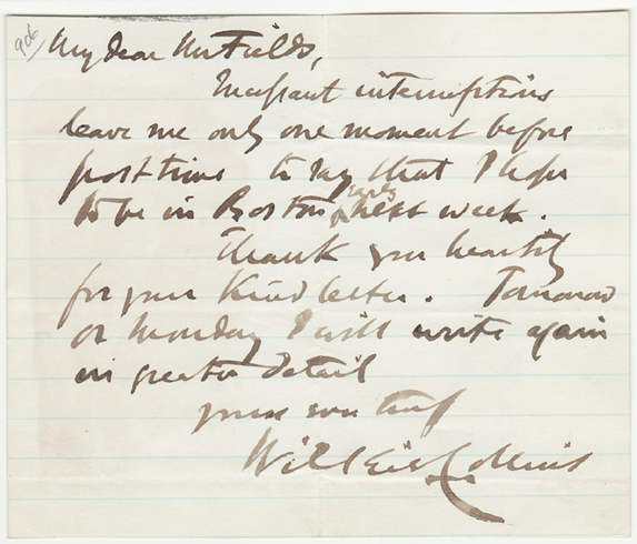 left New York for Boston on Tuesday 28th. This letter is written on a