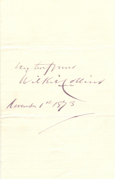 very truly yours Wilkie Collins November 1st 1873