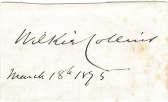 Small scrap of laid paper with signature and dated [Thursday] 18 March 1875, 58x100mm. Pasted on reverse a catalogue of Wilkie Collins books mentioning no books published after 1884.