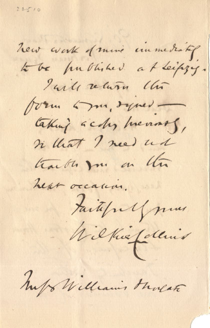 return the Faithfully yours Wilkie Collins Messrs Williams & Norgate |