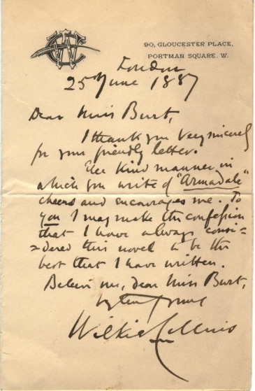 The kind manner in Believe me, dear Miss Burt, Vy truly yours Wilkie Collins