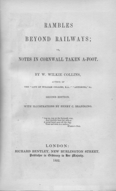 "Since this work first appeared, the all-conquering Railway has invaded Cornwall; and the title of my book has become a misnomer already...They may make a Railway in Cornwall; but they can't make an alteration in MY TITLE" |