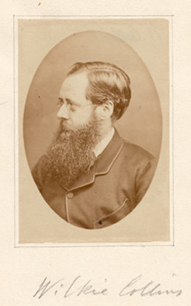 1864 - age 40 This interesting image is on thin paper unmounted on card which has been carefully window mounted on a sheet of paper as if for inclusion in a book. The photographer is identified from the CDV image which is clearly identical. The date comes from Wilkie's own letters. Letters indicate he planned to sit for John Watkins on 30 January 1862 and probably did so in late May 1864. Shortly after that sitting he wrote to his mother "I send you four autographs on the other leaf - and I enclose two photographs (done by another photographer), which seem to me to be the best likenesses yet produced of me." (to Harriet Collins 11 June 1864 Public Face I 322) |