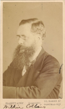 1866 aged 42 One of three different portraits by Elliott & Fry of 55 Baker Street. The date of 1866 is not certain. But a letter from Wilkie dated September 1866 refers to three different portraits and says they are available from Elliott & Fry. Apparently signed by Wilkie under the image.