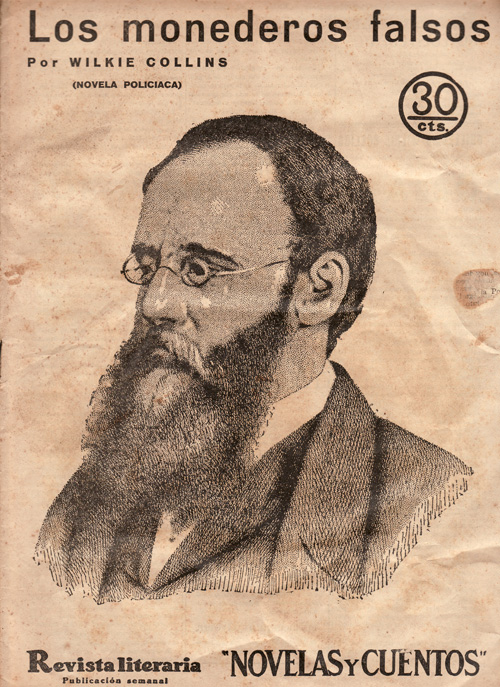 1934 from 1860s/70s Full page front cover illustration for a Spanish translation of Los Monederos Falsos (A Rogue's Life) published in newspaper format in October 1934. Not identified with any particular portrait.